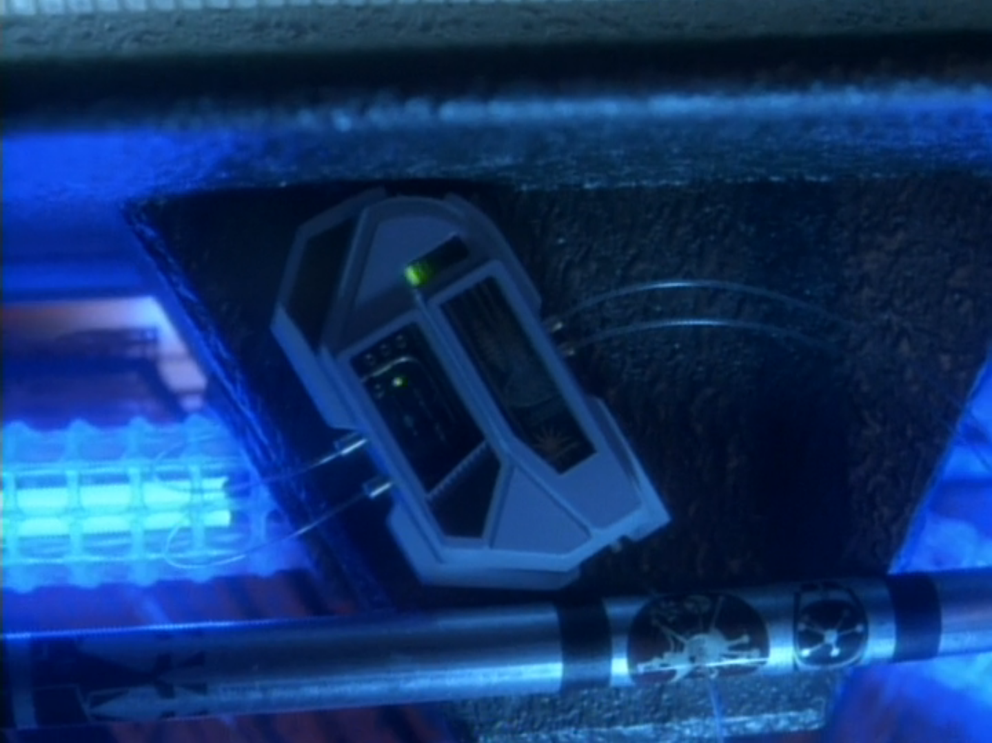Oh, a mysterious bit of technology in this sea of indecipherable fake technology is doing a thing! We know it’s a bad thing because ominous music plays!