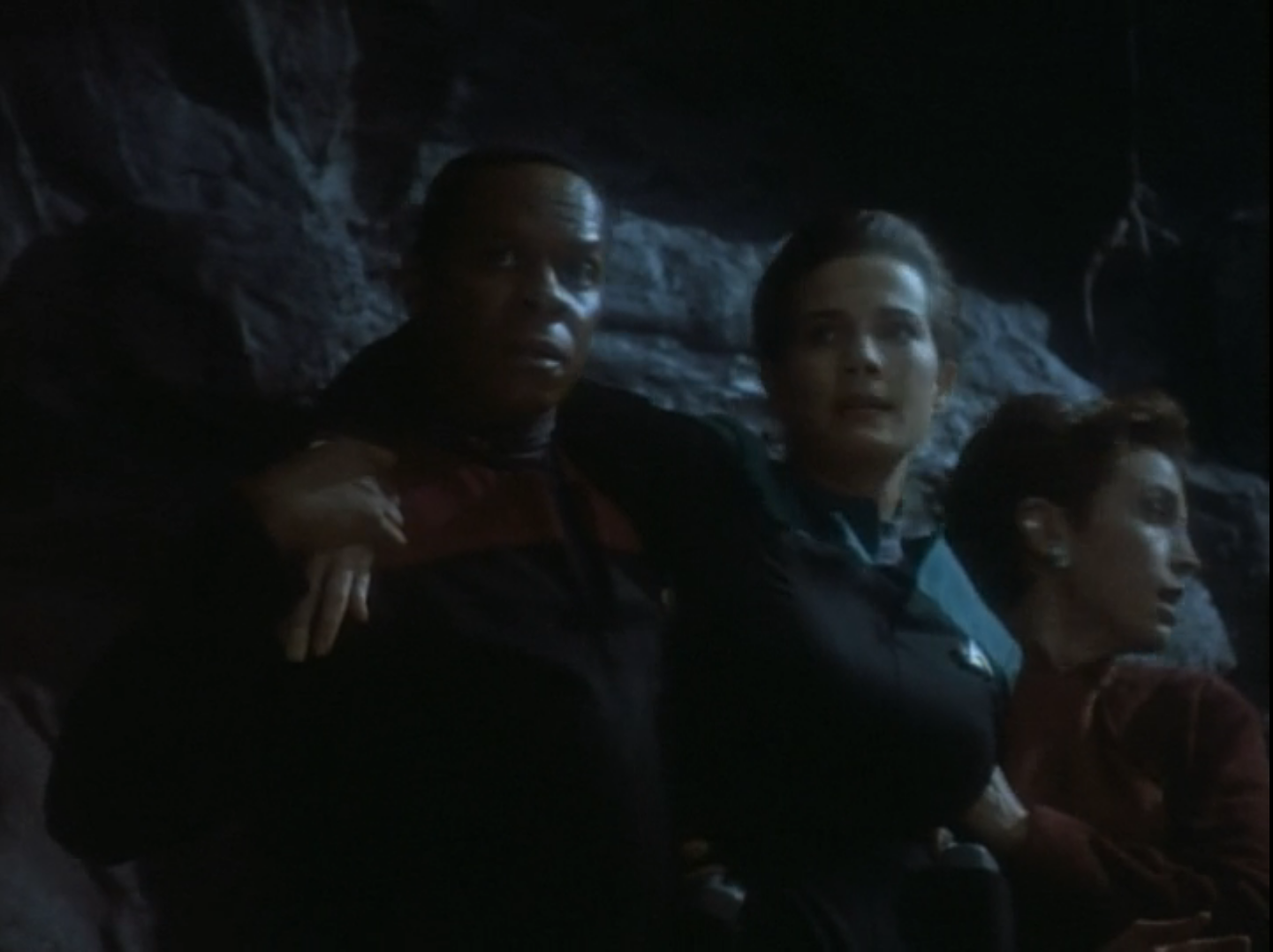 Dax gets hurt and argues that they should leave her behind, she’d totally ditch Sisko if their roles were reversed, just the way the Marines don’t. They try to escape the earthquake situation, because everyone knows you can run away from an earthquake. Just a few more meters [feet x 3] and they’ll be a few more meters [feet x 3] along! They all fall off a cliff and are returned to Quark’s. The end. Okay, Quark lost, and everybody is safe because it’s only a game. That bit was kinda cool. Unsatisfying conclusion about Quark getting blamed for causing the whole thing by cheating, but it’s unskillfully swept under the rug. Quark tries to solicit Mr. Fallow, the Watti leader, to have the game as an offering in his bar, but I’m pretty sure that deal doesn’t materialize. The end. For real this time.