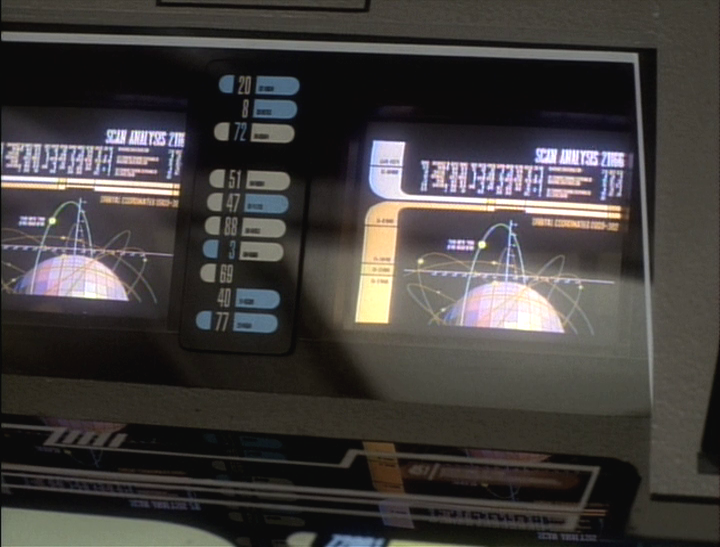 While on the other side, somewhere in the gamma quadrant, they pick up a strange signal. That never happens on Star Trek! Sisko, keeping in mind his passenger, decides to send a probe in to check it out. They can follow up on it later. But the Pope-ette convinces them to not change their normal procedures on her account, so they go in closer to take a look.