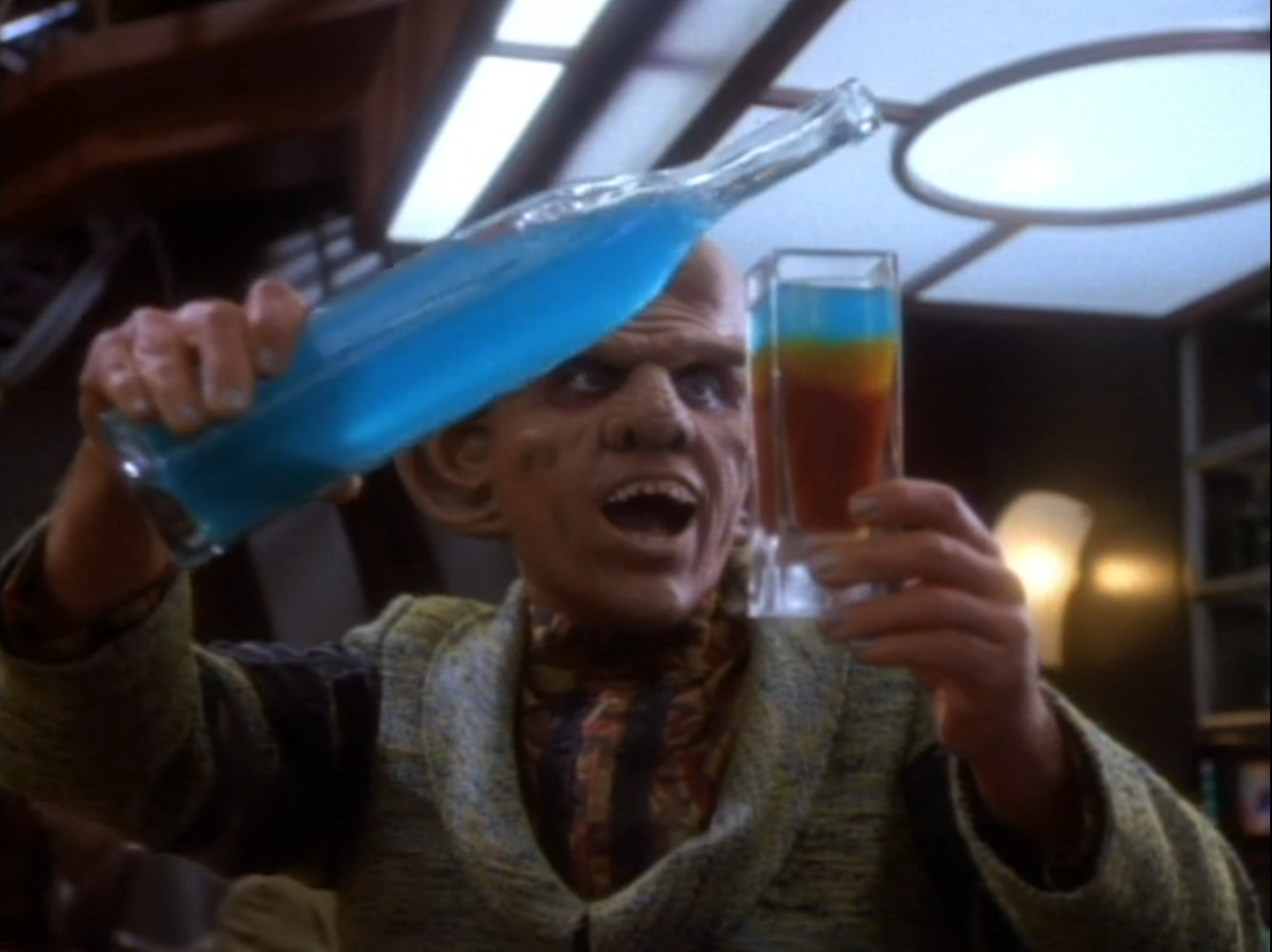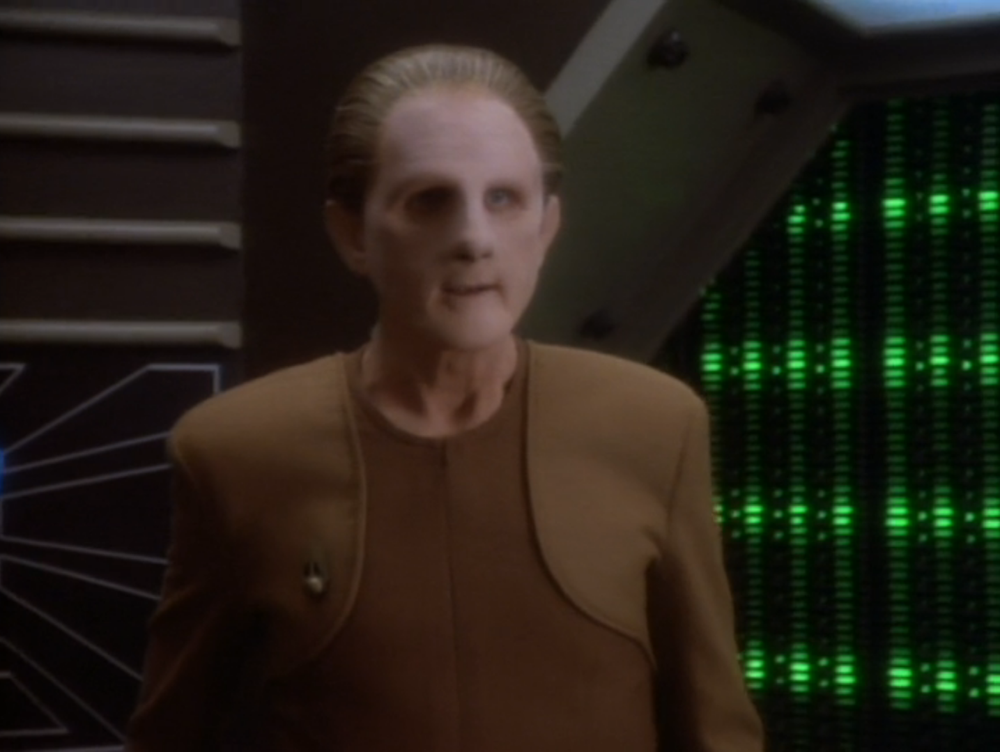 Dax was oddly daydreaming when they were dismissed from the meeting to take a runabout to find the ship’s recorder. Odo is tasked with finding out about the ship’s mission, a bio-survey. The Valrians are asking to dock and Kira observes that their route so far has matched the one used by the dolomide runners. Heh, the next stop would be the purification plant at Ultima Thule[2]