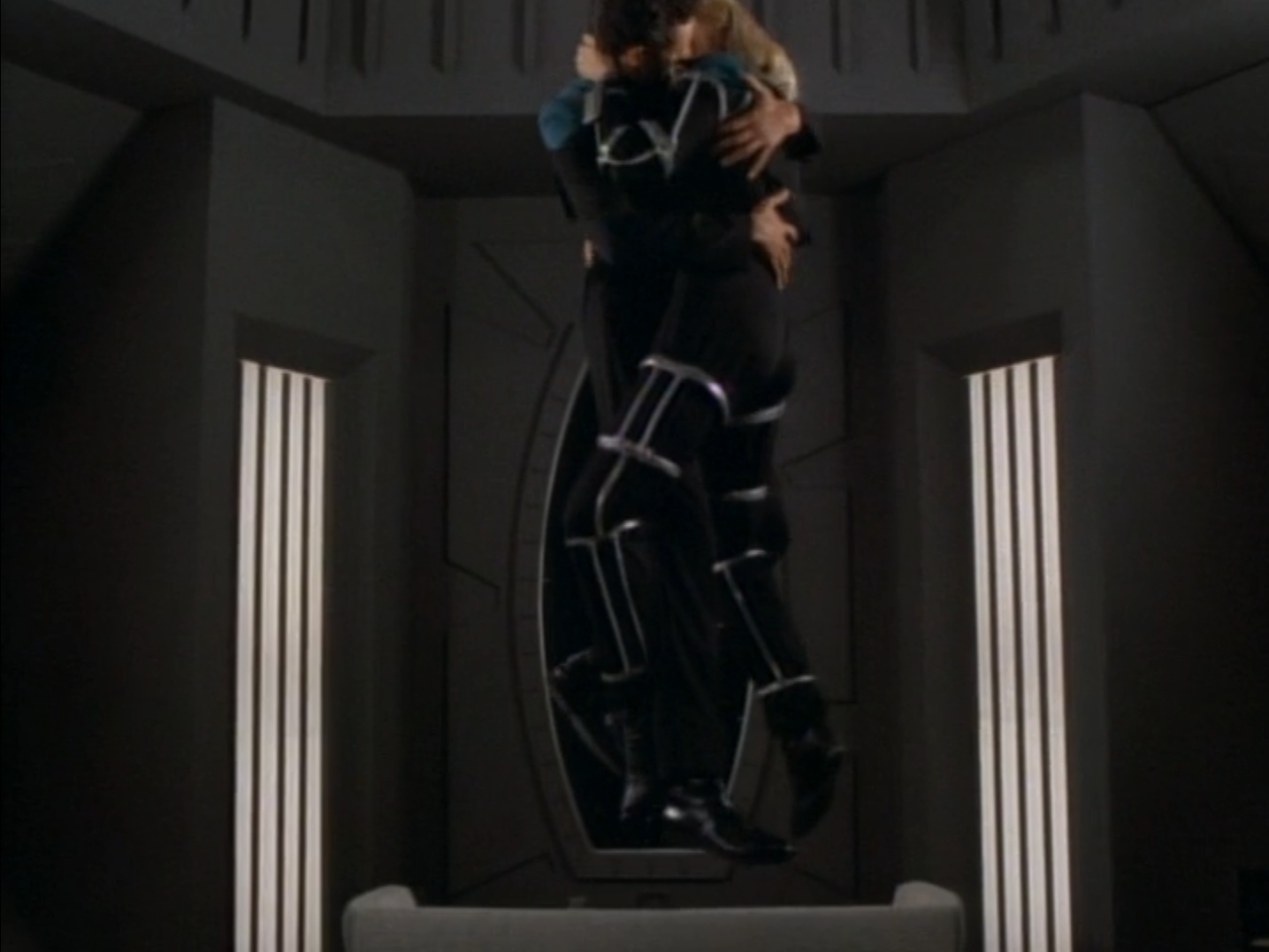 The next day when Dax goes to Meet Melora for their mission, she finds that she had a little oopsie in a supply room.