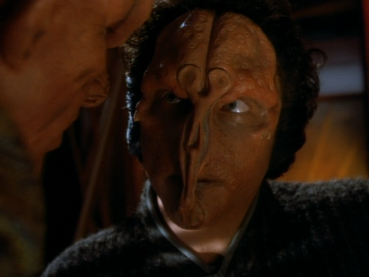 Proboscis guy shows up in Odo’s office. I guess Odo wanted to dissuade him from killing Quark since he can’t arrest him for anything yet.